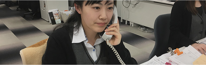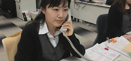 当社のサービスのクオリティーを縁の下で支えるのは、お客様からの電話対応窓口となる業務部。すべての社員が豊富な商材知識を備えていますので、スピーディーに最適なご提案ができます。